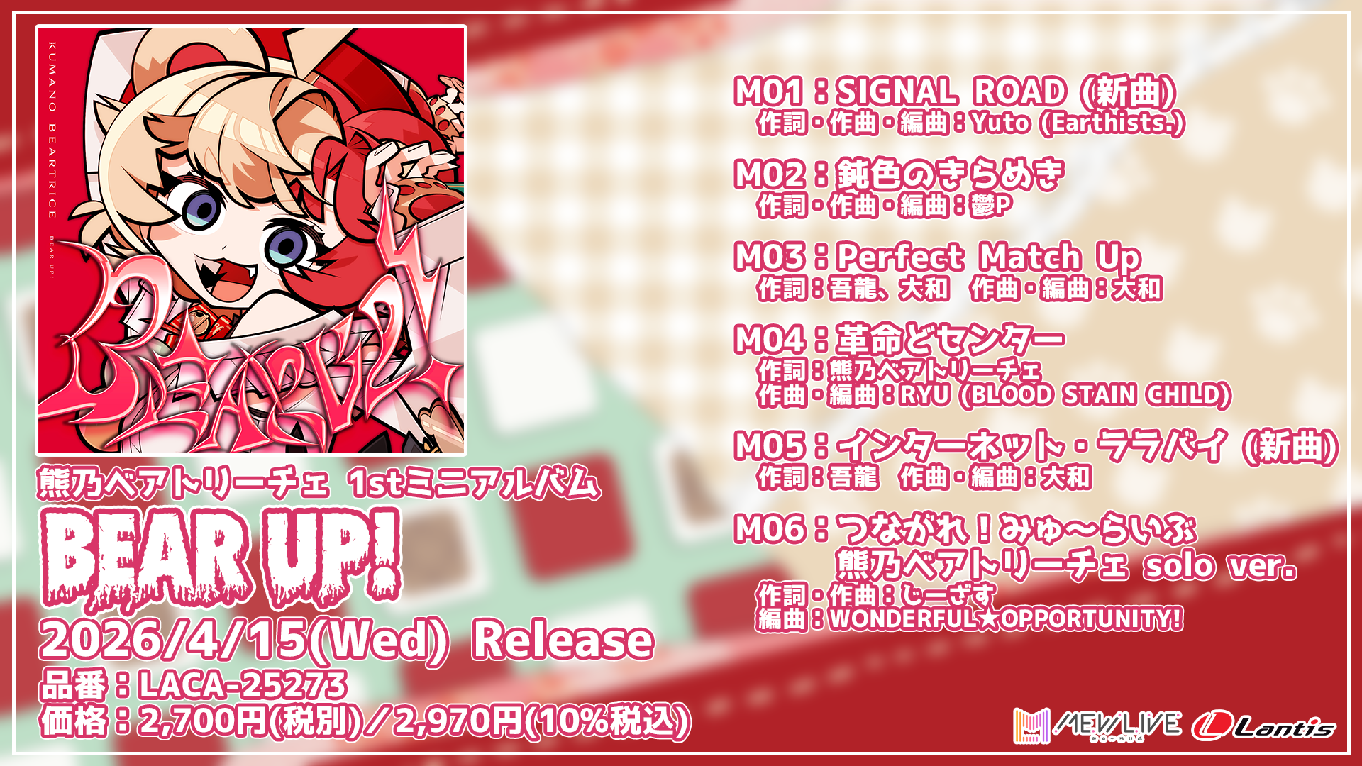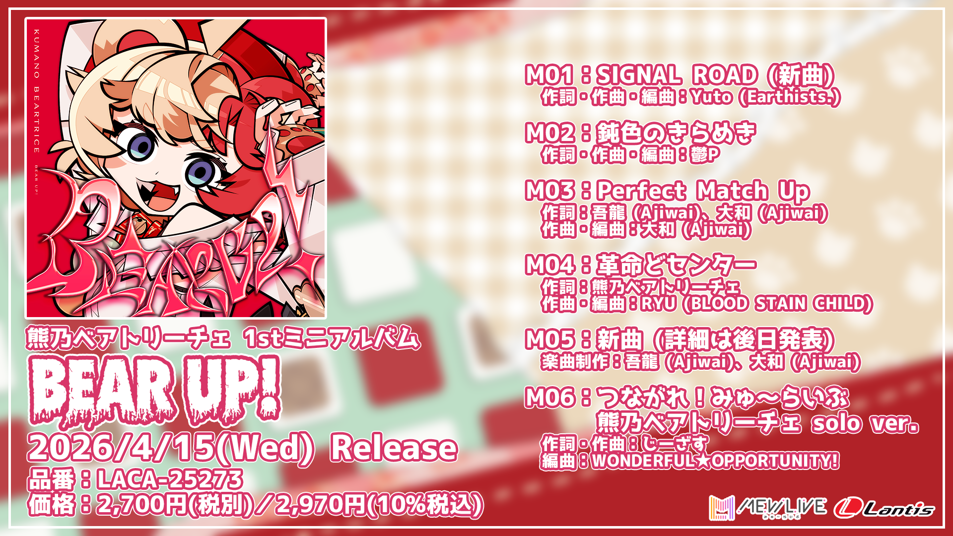 熊乃ベアトリーチェの1stミニアルバム『BEAR UP!』が、2026年4月15日(水)にランティスレーベルよりリリース決定!